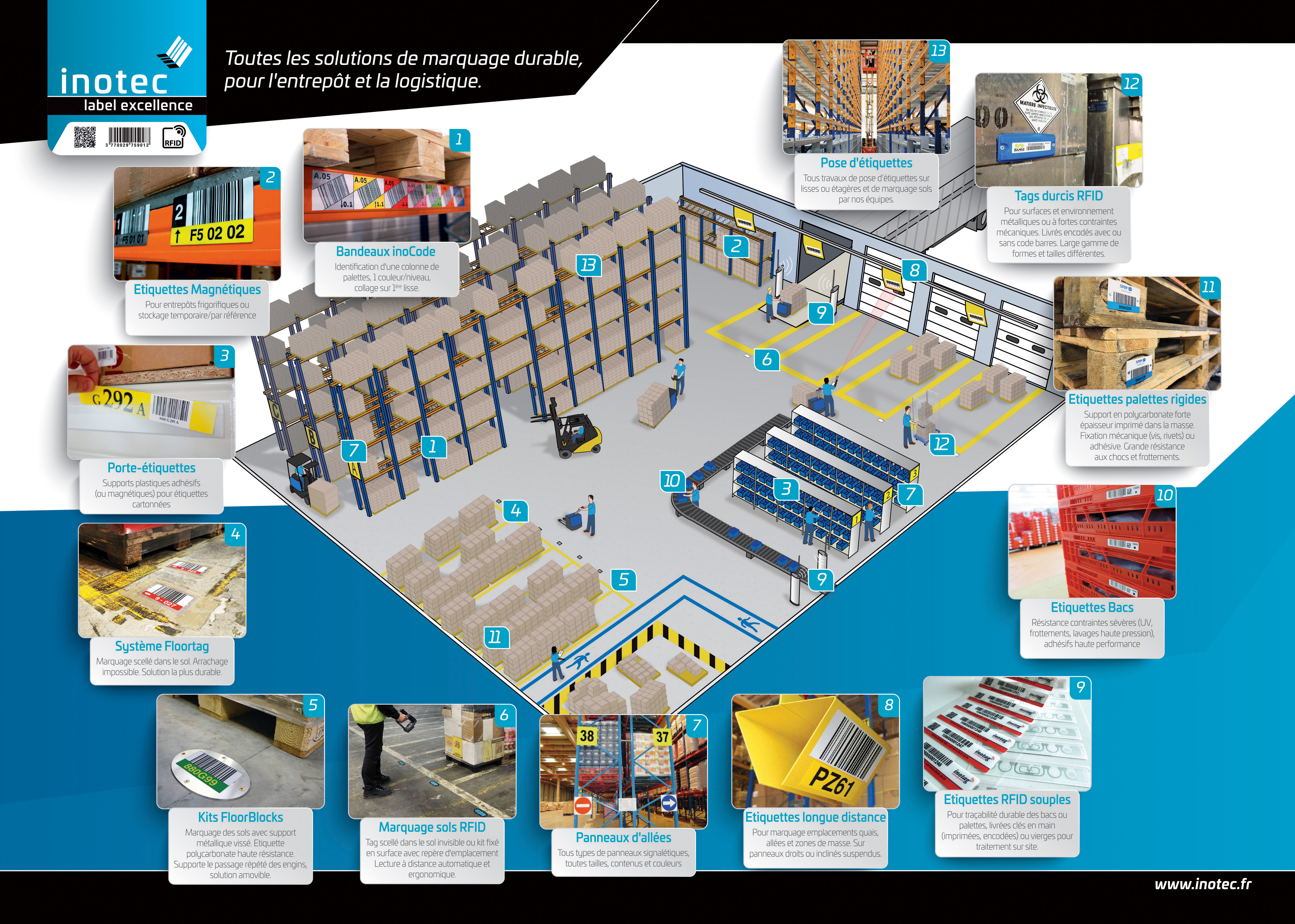 Pour une logistique innovante et des opérations sécurisées : comptez sur les solutions inotec. Faites évoluer votre entrepôt vers la logistique 4.0 avec des étiquettes code-barres ou RFid durables réalisées selon vos spécificités.